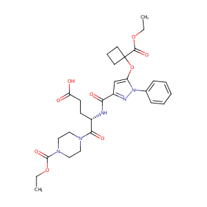 InChI=1S/C29H37N5O9/c1-3-41-27(39)29(13-8-14-29)43-23-19-22(31-34(23)20-9-6-5-7-10-20)25(37)30-21(11-12-24(35)36)26(38)32-15-17-33(18-16-32)28(40)42-4-2/h5-7,9-10,19,21H,3-4,8,11-18H2,1-2H3,(H,30,37)(H,35,36)/t21-/m0/s1