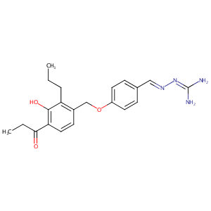 InChI=1S/C21H26N4O3/c1-3-5-17-15(8-11-18(20(17)27)19(26)4-2)13-28-16-9-6-14(7-10-16)12-24-25-21(22)23/h6-12,27H,3-5,13H2,1-2H3,(H4,22,23,25)/b24-12+