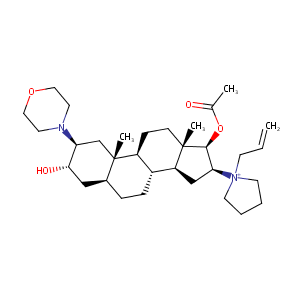 Esmeron (TN); Zemuron (TN); (2beta,3alpha,5alpha,16beta,17beta)-17-acetoxy-16-(1-allylpyrrolidinium-1-yl)-3-hydroxy-2-(morpholin-4-yl)androstane; [(2S,3S,5S,8R,9S,10S,13S,14S,16S,17R)-3-hydroxy-10,13-dimethyl-2-morpholin-4-yl-16-(1-prop-2-enylpyrrolidin-1-ium-1-yl)-2,3,4,5,6,7,8,9,11,12,14,15,16,17-tetradecahydro-1H-cyclopenta[a]phenanthren-17-yl] acetate