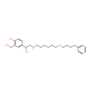 Aeromax; Astmerole; SALMATEROL; Salmeterolum; Serevent; Glaxo Wellcome brand of salmeterol xinafoate; Salmeterolum [Latin]; GR 33343X; S 2692; GR-33343X; Serevent (TN); Salmeterol (USAN/INN); Salmeterol [USAN:BAN:INN]; (+-)-4-Hydroxy-alpha'-(((6-(4-phenylbutoxy)hexyl)amino)methyl)-m-xylene-alpha,alpha'-diol; (+-)-4-Hydroxy-alpha1-(((6-(4-phenylbutoxy)hexyl)amino)methyl)-1,3-benzenedimethanol; (inverted question mark) 4-Hydroxy-a1-[[[6-(4-phenylbutoxy)hexyl]amino]m-ethyl]-1,3-benzenedimethanol; 2-(hydroxymethyl)-4-(1-hydroxy-2-{[6-(4-phenylbutoxy)hexyl]amino}ethyl)phenol; 2-(hydroxymethyl)-4-[1-hydroxy-2-({6-[(4-phenylbutyl)oxy]hexyl}amino)ethyl]phenol; 2-(hydroxymethyl)-4-[1-hydroxy-2-[6-(4-phenylbutoxy)hexylamino]ethyl]phenol
