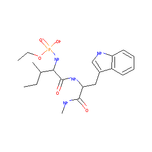 CCC(C)C(C(=O)NC(CC1=CNC2=CC=CC=C21)C(=O)NC)NP(=O)(O)OCC