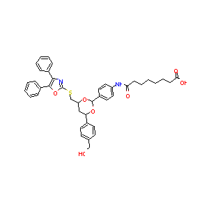 C1C(OC(OC1C2=CC=C(C=C2)CO)C3=CC=C(C=C3)NC(=O)CCCCCCC(=O<br />)O)CSC4=NC(=C(O4)C5=CC=CC=C5)C6=CC=CC=C6