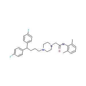 CC1=C(C(=CC=C1)C)NC(=O)CN2CCN(CC2)CCCC(C3=CC=C(C=C3)F)C<br />4=CC=C(C=C4)F