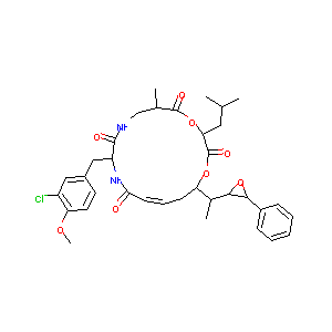 CC1CNC(=O)C(NC(=O)C=CCC(OC(=O)C(OC1=O)CC(C)C)C(C)C2C(O2<br />)C3=CC=CC=C3)CC4=CC(=C(C=C4)OC)Cl