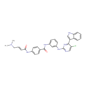 InChI=1S/C31H28ClN7O2/c1-39(2)16-6-11-28(40)35-21-14-12-20(13-15-21)30(41)36-22-7-5-8-23(17-22)37-31-34-19-26(32)29(38-31)25-18-33-27-10-4-3-9-24(25)27/h3-15,17-19,33H,16H2,1-2H3,(H,35,40)(H,36,41)(H,34,37,38)/b11-6+