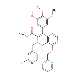 InChI=1S/C31H29N5O7/c1-18-13-19(7-11-32-18)16-36-27(31(38)42-5)25(20-14-22(39-2)28(41-4)23(15-20)40-3)21-8-12-35-29(26(21)30(36)37)43-17-24-33-9-6-10-34-24/h6-15H,16-17H2,1-5H3