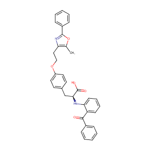 InChI=1S/C34H30N2O5/c1-23-29(36-33(41-23)26-12-6-3-7-13-26)20-21-40-27-18-16-24(17-19-27)22-31(34(38)39)35-30-15-9-8-14-28(30)32(37)25-10-4-2-5-11-25/h2-19,31,35H,20-22H2,1H3,(H,38,39)/t31-/m0/s1