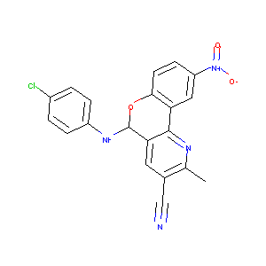 CC1=NC2=C(C=C1C#N)C(OC3=C2C=C(C=C3)[N+](=O)[O-])NC4=CC=<br />C(C=C4)Cl