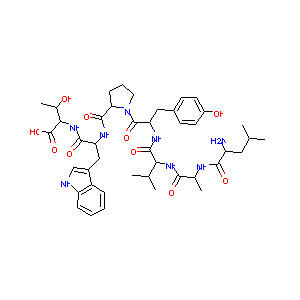 CC(C)CC(C(=O)NC(C)C(=O)NC(C(C)C)C(=O)NC(CC1=CC=C(C=C1)O<br />)C(=O)N2CCCC2C(=O)NC(CC3=CNC4=CC=CC=C43)C(=O)NC(C(C)O)C<br />(=O)O)N