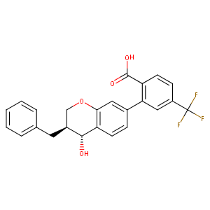 InChI=1S/C24H19F3O4/c25-24(26,27)17-7-9-18(23(29)30)20(12-17)15-6-8-19-21(11-15)31-13-16(22(19)28)10-14-4-2-1-3-5-14/h1-9,11-12,16,22,28H,10,13H2,(H,29,30)/t16-,22+/m0/s1
