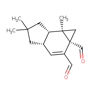 InChI=1S/C15H20O2/c1-13(2)5-10-4-11(7-16)15(9-17)8-14(15,3)12(10)6-13/h4,7,9-10,12H,5-6,8H2,1-3H3/t10-,12+,14-,15-/m1/s1