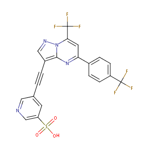 InChI=1S/C21H10F6N4O3S/c22-20(23,24)15-5-3-13(4-6-15)17-8-18(21(25,26)27)31-19(30-17)14(10-29-31)2-1-12-7-16(11-28-9-12)35(32,33)34/h3-11H,(H,32,33,34)