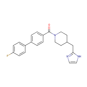 c1(ccc(cc1)c1ccc(cc1)C(=O)N1CCC(CC1)Cc1[nH]ccn1)F