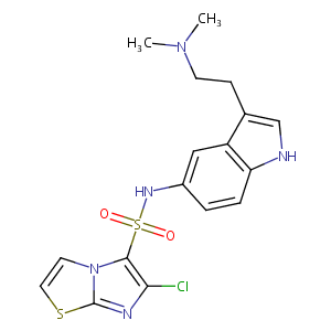 InChI=1S/C17H18ClN5O2S2/c1-22(2)6-5-11-10-19-14-4-3-12(9-13(11)14)21-27(24,25)16-15(18)20-17-23(16)7-8-26-17/h3-4,7-10,19,21H,5-6H2,1-2H3