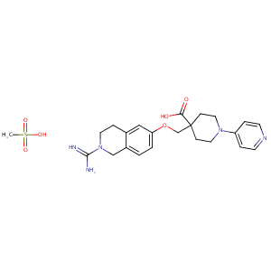 S(=O)(=O)(O)C.N1(C(=N)N)Cc2c(cc(OCC3(C(=O)O)CCN(c4ccncc<br />4)CC3)cc2)CC1