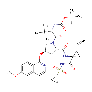 [C@@H]1(C=C)C[C@@]1(C(=O)NS(=O)(=O)C1CC1)NC(=O)[C@@H]1C<br />[C@H](CN1C(=O)[C@H](C(C)(C)C)NC(=O)OC(C)(C)C)Oc1c2ccc(c<br />c2ccn1)OC