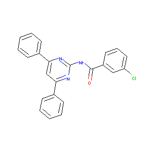C1=CC=C(C=C1)C2=CC(=NC(=N2)NC(=O)C3=CC(=CC=C3)Cl)C4=CC=<br />CC=C4