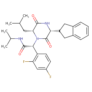 InChI=1S/C28H33F2N3O3/c1-15(2)11-23-26(34)32-24(19-12-17-7-5-6-8-18(17)13-19)28(36)33(23)25(27(35)31-16(3)4)21-10-9-20(29)14-22(21)30/h5-10,14-16,19,23-25H,11-13H2,1-4H3,(H,31,35)(H,32,34)/t23-,24-,25-/m1/s1