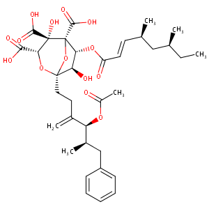 InChI=1S/C35H46O14/c1-7-19(2)17-20(3)13-14-25(37)47-28-27(38)33(48-29(30(39)40)34(45,31(41)42)35(28,49-33)32(43)44)16-15-21(4)26(46-23(6)36)22(5)18-24-11-9-8-10-12-24/h8-14,19-20,22,26-29,38,45H,4,7,15-18H2,1-3,5-6H3,(H,39,40)(H,41,42)(H,43,44)/b14-13+/t19-,20+,22+,26+,27+,28+,29+,33-,34+,35-/m0/s1