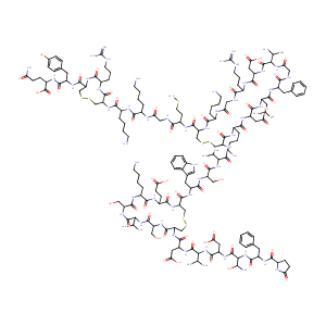 InChI=1S/C179H274N50O55S7/c1-87(2)65-111-155(261)208-112(66-93-33-15-13-16-34-93)146(252)195-77-133(239)225-139(88(3)4)172(278)213-117(71-136(244)245)158(264)199-100(44-31-62-190-178(186)187)144(250)193-75-131(237)198-102(40-22-27-58-181)148(254)219-124(167(273)205-109(56-64-285-12)145(251)194-76-132(238)197-101(39-21-26-57-180)147(253)200-105(43-25-30-61-184)151(257)220-123-81-286-288-83-125(221-152(258)106(203-166(123)272)45-32-63-191-179(188)189)169(275)210-113(68-95-46-48-97(234)49-47-95)156(262)206-110(177(283)284)50-53-129(185)235)82-287-291-86-128(168(274)202-104(42-24-29-60-183)150(256)212-116(70-135(242)243)159(265)207-111)224-175(281)142(91(9)10)228-164(270)121(79-231)216-157(263)115(69-96-74-192-99-38-20-19-37-98(96)99)211-170(276)126-84-289-290-85-127(171(277)217-122(80-232)165(271)227-141(90(7)8)174(280)218-120(78-230)163(269)201-103(41-23-28-59-182)149(255)204-108(154(260)222-126)52-55-134(240)241)223-160(266)118(72-137(246)247)214-173(279)140(89(5)6)226-162(268)119(73-138(248)249)215-176(282)143(92(11)233)229-161(267)114(67-94-35-17-14-18-36-94)209-153(259)107-51-54-130(236)196-107/h13-20,33-38,46-49,74,87-92,100-128,139-143,192,230-234H,21-32,39-45,50-73,75-86,180-184H2,1-12H3,(H2,185,235)(H,193,250)(H,194,251)(H,195,252)(H,196,236)(H,197,238)(H,198,237)(H,199,264)(H,200,253)(H,201,269)(H,202,274)(H,203,272)(H,204,255)(H,205,273)(H,206,262)(H,207,265)(H,208,261)(H,209,259)(H,210,275)(H,211,276)(H,212,256)(H,213,278)(H,214,279)(H,215,282)(H,216,263)(H,217,277)(H,218,280)(H,219,254)(H,220,257)(H,221,258)(H,222,260)(H,223,266)(H,224,281)(H,225,239)(H,226,268)(H,227,271)(H,228,270)(H,229,267)(H,240,241)(H,242,243)(H,244,245)(H,246,247)(H,248,249)(H,283,284)(H4,186,187,190)(H4,188,189,191)
