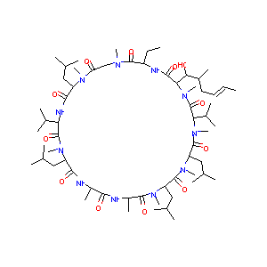 CSA; Ciclosporin; Consupren; Cyclokat; Cyclophorine; Cyclosporin; Equoral; Gengraf; Mitogard; Neoplanta; Neoral; NeuroSTAT; Papilock; Pulminiq; Restasis; Sandimmun; Sandimmune; SangCyA; Sigmasporin; Vekacia; Zyclorin; Cipol N; Consupren S; Cyclosporin A; Cyclosporin A Implant; Cyclosporine A; Cyclosporine [USAN]; RamihyphinA; Sandimmun Neoral; Sigmasporin Microoral; Antibiotic S 7481F1; C 3662; Cicloral (TN); Ciclosporin (JP15); Cipol-N; Cyclosporin A, Tolypocladium inflatum; Cyclosporine (USP); DE-076; From Tolypocladium inflatum (Trichoderma polysporin); Gengraf (TN); Modusik-A; Neoral (TN); Nova-22007; OL 27-400; OL-27400; OLO-400; Restasis (TN); S-Neoral; SDZ-OXL 400; ST-603; Sandimmune (TN); Sang-2000; Sang-35; TRANSGENIC MODEL EVALUATION (CYCLOSPORIN A); CB-01-09 MMX; CYCLOSPORIN A (SEE ALSO TRANSGENIC MODEL EVALUATION (CYCLOSPORIN A)); CsA & IFN-alpha; Cyclosporin A & IFN-alpha; GNF-Pf-2808; Helv Chim Acta 60: 1568 (1977); Sandimmune, Gengraf, Restasis, Atopica, Sangcya, Cyclosporine; BMT-ABA-SAR-MLE-VAL-MLE-ALA-ALA-MLE-MLE-MVA; BMT-ABA-SAR-MLE-VAL-MLE-ALA-DAL-MLE-MLE-MVA; CsA