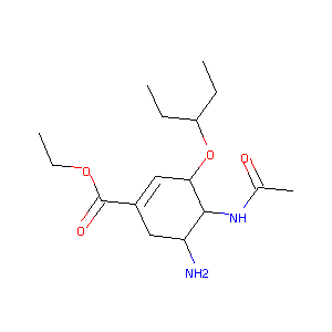 Agucort; Oseltamivirum; Tamvir; GS 4104; GS4104; Agucort (TN); GS-4104; Oseltamivir (INN); Oseltamivir [INN:BAN]; Ro-640796; Tamiflu (TN); Tamiflu-Free; Ro-64-0796; Tamiflu (*Phosphate salt 1:1*); Ethyl (3R,4R,5S)-4-acetamido-5-amino-3-pentan-3-yloxycyclohexene-1-carboxylate; Ethyl (5S,3R,4R)-4-(acetylamino)-5-amino-3-(ethylpropoxy)cyclohex-1-enecarboxylate; Ethyl (3R,4R,5S)-4-acetamido-5-amino-3-(1-ethylpropoxy)-1-cyclohexene-1-carboxylate; Ethyl (3R,4R,5S)-4-acetamido-5-amino-3-(pentan-3-yloxy)cyclohex-1-ene-1-carboxylate; (-)-oseltamivir; (3R,4R,5S)-4-Acetylamino-5-amino-3-(1-ethyl-propoxy)-cyclohex-1-enecarboxylic acid; (3R,4R,5S)-4-acetamido-5-amino-3-(pentan-3-yloxy)cyclohex-1-enecarboxylic acid; 4-Acetylamino-5-amino-3-(1-ethyl-propoxy)-cyclohex-1-enecarboxylic acid; OTV