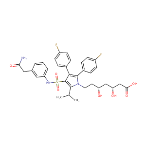 InChI=1S/C34H37F2N3O7S/c1-20(2)32-34(47(45,46)38-26-5-3-4-21(16-26)17-29(37)42)31(22-6-10-24(35)11-7-22)33(23-8-12-25(36)13-9-23)39(32)15-14-27(40)18-28(41)19-30(43)44/h3-13,16,20,27-28,38,40-41H,14-15,17-19H2,1-2H3,(H2,37,42)(H,43,44)/t27-,28-/m1/s1