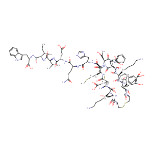 InChI=1S/C110H159N27O34S5/c1-9-55(6)88(108(168)130-77(110(170)171)40-59-45-116-64-22-14-13-21-62(59)64)136-107(167)87(54(4)5)135-102(162)76(44-86(148)149)128-93(153)67(29-31-82(114)141)121-99(159)73(41-60-46-115-52-117-60)126-106(166)81-49-174-173-48-63(113)90(150)131-78(47-138)103(163)134-79-50-175-176-51-80(105(165)123-70(37-53(2)3)96(156)124-72(39-58-25-27-61(140)28-26-58)97(157)125-71(98(158)133-81)38-57-19-11-10-12-20-57)132-94(154)68(30-32-83(142)143)120-91(151)65(23-15-17-34-111)118-101(161)75(43-85(146)147)129-109(169)89(56(7)139)137-95(155)69(33-36-172-8)122-100(160)74(42-84(144)145)127-92(152)66(119-104(79)164)24-16-18-35-112/h10-14,19-22,25-28,45-46,52-56,63,65-81,87-89,116,138-140H,9,15-18,23-24,29-44,47-51,111-113H2,1-8H3,(H2,114,141)(H,115,117)(H,118,161)(H,119,164)(H,120,151)(H,121,159)(H,122,160)(H,123,165)(H,124,156)(H,125,157)(H,126,166)(H,127,152)(H,128,153)(H,129,169)(H,130,168)(H,131,150)(H,132,154)(H,133,158)(H,134,163)(H,135,162)(H,136,167)(H,137,155)(H,142,143)(H,144,145)(H,146,147)(H,148,149)(H,170,171)/t55-,56+,63-,65-,66-,67-,68-,69-,70-,71-,72-,73-,74-,75-,76-,77-,78-,79-,80-,81-,87-,88-,89-/m0/s1