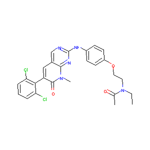 CCN(CCOC1=CC=C(C=C1)NC2=NC=C3C=C(C(=O)N(C3=N2)C)C4=C(C=<br />CC=C4Cl)Cl)C(=O)C