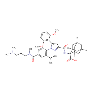 InChI=1S/C39H51N5O6/c1-23(2)29-21-26(37(46)43(5)15-9-14-42(3)4)12-13-31(29)44-32(35-33(49-6)10-8-11-34(35)50-7)22-30(41-44)36(45)40-39(38(47)48)27-17-24-16-25(19-27)20-28(39)18-24/h8,10-13,21-25,27-28H,9,14-20H2,1-7H3,(H,40,45)(H,47,48)