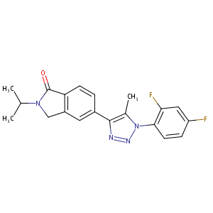 InChI=1S/C20H18F2N4O/c1-11(2)25-10-14-8-13(4-6-16(14)20(25)27)19-12(3)26(24-23-19)18-7-5-15(21)9-17(18)22/h4-9,11H,10H2,1-3H3