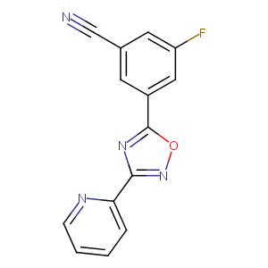 InChI=1S/C14H7FN4O/c15-11-6-9(8-16)5-10(7-11)14-18-13(19-20-14)12-3-1-2-4-17-12/h1-7H