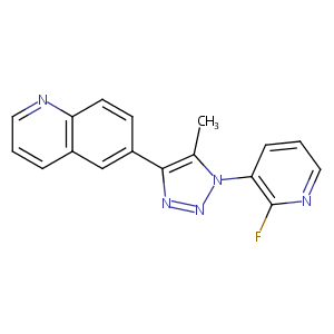 InChI=1S/C17H12FN5/c1-11-16(13-6-7-14-12(10-13)4-2-8-19-14)21-22-23(11)15-5-3-9-20-17(15)18/h2-10H,1H3