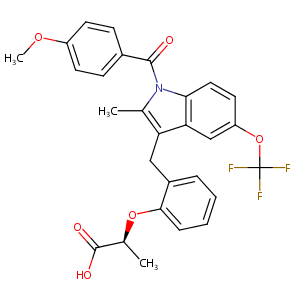 InChI=1S/C28H24F3NO6/c1-16-22(14-19-6-4-5-7-25(19)37-17(2)27(34)35)23-15-21(38-28(29,30)31)12-13-24(23)32(16)26(33)18-8-10-20(36-3)11-9-18/h4-13,15,17H,14H2,1-3H3,(H,34,35)/t17-/m0/s1