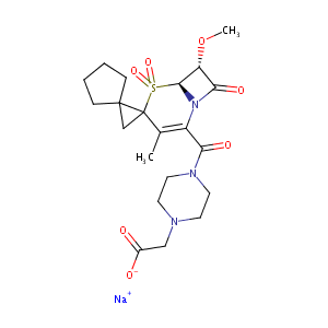 S1(=O)(=O)C2(C(=C(N3[C@H]1[C@H](C3=O)OC)C(=O)N1CCN(CC(=<br />O)[O-])CC1)C)C1(C2)CCCC1.[Na+]