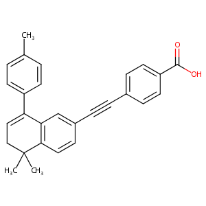 InChI=1S/C28H24O2/c1-19-4-11-22(12-5-19)24-16-17-28(2,3)26-15-10-21(18-25(24)26)7-6-20-8-13-23(14-9-20)27(29)30/h4-5,8-16,18H,17H2,1-3H3,(H,29,30)