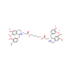 Atracurium Dibesylate; Tracrium (TN); 2,2'-{pentane-1,5-diylbis[oxy(3-oxopropane-3,1-diyl)]}bis[1-(3,4-dimethoxybenzyl)-6,7-dimethoxy-2-methyl-1,2,3,4-tetrahydroisoquinolinium]; 5-[3-[1-[(3,4-dimethoxyphenyl)methyl]-6,7-dimethoxy-2-methyl-3,4-dihydro-1H-isoquinolin-2-ium-2-yl]propanoyloxy]pentyl 3-[1-[(3,4-dimethoxyphenyl)methyl]-6,7-dimethoxy-2-methyl-3,4-dihydro-1H-isoquinolin-2-ium-2-yl]propanoate