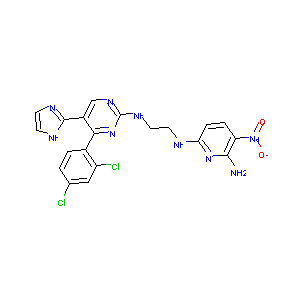 C1=CC(=C(C=C1Cl)Cl)C2=NC(=NC=C2C3=NC=CN3)NCCNC4=NC(=C(C<br />=C4)[N+](=O)[O-])N