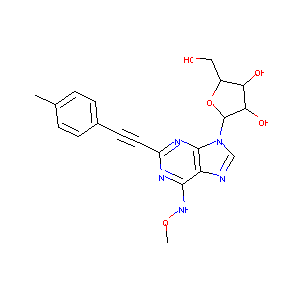 CC1=CC=C(C=C1)C#CC2=NC3=C(C(=N2)NOC)N=CN3C4C(C(C(O4)CO)<br />O)O