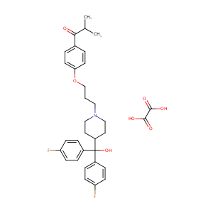 C(c1ccc(cc1)F)(c1ccc(cc1)F)(C1CCN(CC1)CCCOc1ccc(C(=O)C(<br />C)C)cc1)O.C(=O)(C(=O)O)O