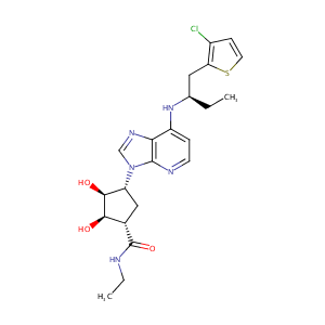 CCNC(=O)[C@H]1C[C@H]([C@H](O)[C@@H]1O)n2cnc3c(N[C@H](CC<br />)Cc4sccc4Cl)ccnc23