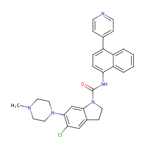 InChI=1S/C29H28ClN5O/c1-33-14-16-34(17-15-33)28-19-27-21(18-25(28)30)10-13-35(27)29(36)32-26-7-6-22(20-8-11-31-12-9-20)23-4-2-3-5-24(23)26/h2-9,11-12,18-19H,10,13-17H2,1H3,(H,32,36)