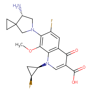 n1(c2c(c(=O)c(c1)C(=O)O)cc(c(N1CC3(CC3)[C@@H](C1)N)c2OC<br />)F)[C@@H]1C[C@@H]1F