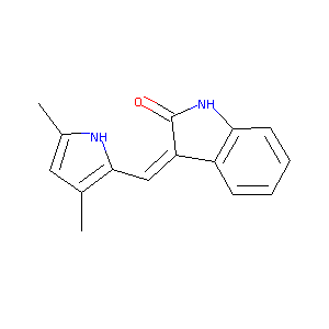 J Med Chem. 2003 Mar 27;46(7):1116-9.Discovery of 5-[5-fluoro-2-oxo-1,2- dihydroindol-(3Z)-ylidenemethyl]-2,4- dimethyl-1H-pyrrole-3-carboxylic acid (2-diethylaminoethyl)amide, a novel tyrosine kinase inhibitor targeting vascular endothelial and platelet-derived growth factor receptor tyrosine kinase.