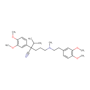 Arpamyl; Calan; Calcan; Cordilox; Dexverapamil; Dilacoran; Drosteakard; Iproveratril; Isoptimo; Isoptin; Isotopin; Vasolan; Veracim; Verapamilo; Verapamilum; Veraptin; Verexamil; Bosoptin (TN); Calan (TN); D-365; Isoptin (TN); Verapamilo [INN-Spanish]; Verapamilum [INN-Latin]; Verelan (TN); CP-16533-1; Covera-HS (TN); Verapamil (USAN/INN); Verapamil [USAN:BAN:INN]; Verapamil [USAN:INN:BAN]; Alpha-((N-Methyl-N-homoveratryl)-gamma-aminopropyl)-3,4-dimethoxyphenylacetonitrile; Alpha-Isopropyl-alpha-((N-methyl-N-homoveratryl)-gamma-aminopropyl)-3,4-dimethoxyphenylacetonitrile; Alpha-(3-((2-(3,4-Dimethoxyphenyl)ethyl)-methylamino)propyl)-3,4-dimethoxy-alpha-(1-methylethyl)benzeneacetonitrile; (+-)-Verapamil; (+/-)-VERAPAMIL; (1)-3-(3,4-Dimethoxyphenyl)-6-((5,6-dimethoxyphenethyl)methylamino)hexane-3-carbonitrile; 2-(3,4-Dimethoxyphenyl)-5-[2-(3,4-dimethoxyphenyl)ethyl-methyl-amino]-2-(1-methylethyl) pentanenitrile; 2-(3,4-dimethoxyphenyl)-5-[2-(3,4-dimethoxyphenyl)ethyl-methylamino]-2-propan-2-ylpentanenitrile; 2-(3,4-dimethoxyphenyl)-5-{[2-(3,4-dimethoxyphenyl)ethyl](methyl)amino}-2-(propan-2-yl)pentanenitrile; 5-((3,4-Dimethoxyphenethyl)methylamino)-2-(3,4-dimethoxyphenyl)-2-isopropylvaleronitrile; 5-[(3,4-Dimethoxyphenethyl)methylamino]-2-(3,4-dimethoxyphenyl)-2-isopropylvaleronitrile; Verapamil (Na-Ca chanel blocker)