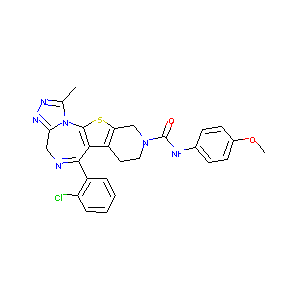 CC1=NN=C2N1C3=C(C4=C(S3)CN(CC4)C(=O)NC5=CC=C(C=C5)OC)C(<br />=NC2)C6=CC=CC=C6Cl