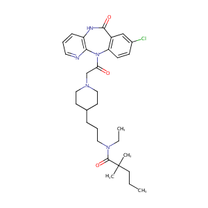 n1(c2c(c(=O)[nH]c3c1nccc3)cc(cc2)Cl)C(=O)CN1CCC(CC1)CCC<br />N(C(=O)C(CCC)(C)C)CC