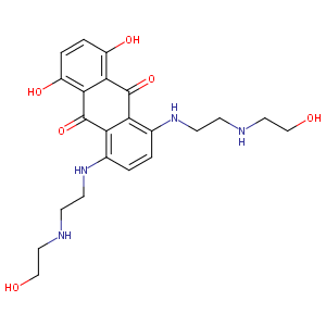 DHAD; DHAQ; Dihydroxyanthraquinone; MIX; Misostol; Mitoxanthrone; Mitoxantron; Mitoxantrona; Mitoxantronum; Mitozantrone; DHAQ HCl; Mitoxantrone [INN]; Mitozantrone hydrochloride; Mitoxantrone 2HCl; Liposome Encapsulated Mitoxantrone (LEM); Misostol (TN); Mitoxantrona [INN-Spanish]; Mitoxantrone (INN); Mitoxantrone (free base); Mitoxantronum [INN-Latin]; Novantrone (TN); AN-584/42007670; Novantrone(R) (mitoxantrone for injection concentrate); DHAQ (*Diacetate salt*); MITOXANTRONE, Mitoxantrone Hydrochloride, Mitoxantrone dihydrochloride, MITOXANTHRONE HYDROCHLORIDE; MITOXANTRONE, 1,4-DIHYDROXY-5,8-BIS({2-[(2-HYDROXYETHYL)AMINO]ETHYL}AMINO)ANTHRA-9,10-QUINONE; 1,4-Bis(2-(2-hydroxyethylamino)ethyl)amino)-5,8-dihydroxyanthraquinone; 1,4-DIHYDROXY-5,8-BIS({2-[(2-HYDROXYETHYL)AMINO]ETHYL}AMINO)-9,10-ANTHRACENEDIONE; 1,4-Dihydroxy-5,8-bis(2-((2-hydroxyethyl)amino)ethylamino)-9,10-anthracenedione; 1,4-Dihydroxy-5,8-bis(5-hydroxy-3-azapentylamino)anthrachinon; 1,4-Dihydroxy-5,8-bis[2-(2-hydroxyethylamino)ethylamino]anthracene-9,10-dione; 1,4-Dihydroxy-5,8-bis[[2-[(2-hydroxyethyl)amino]ethyl]amino]-9,10-anthracenedione; 1,4-dihydroxy-5,8-bis({2-[(2-hydroxyethyl)amino]ethyl}amino)anthra-9,10-quinone; 1,4-dihydroxy-5,8-bis({2-[(2-hydroxyethyl)amino]ethyl}amino)anthracene-9,10-dione; 5,8-Bis((2-((2-hydroxyethyl)amino)ethyl)amino)-1,4-dihydroxyanthraquinone; 9,10-Anthracenedione, 1,4-dihydroxy-5,8-bis((2-((2-hydroxyethyl)amino)ethyl)amino)-(9CI)