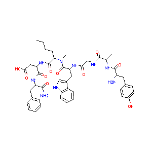 CCCCC(C(=O)NC(CC(=O)O)C(=O)NC(CC1=CC=CC=C1)C(=O)N)N(C)C<br />(=O)C(CC2=CNC3=CC=CC=C32)NC(=O)CNC(=O)C(C)NC(=O)C(CC4=C<br />C=C(C=C4)O)N