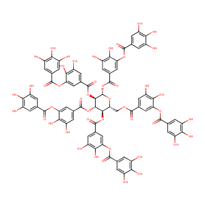 InChI=1S/C76H52O46/c77-32-1-22(2-33(78)53(32)92)67(103)113-47-16-27(11-42(87)58(47)97)66(102)112-21-52-63(119-72(108)28-12-43(88)59(98)48(17-28)114-68(104)23-3-34(79)54(93)35(80)4-23)64(120-73(109)29-13-44(89)60(99)49(18-29)115-69(105)24-5-36(81)55(94)37(82)6-24)65(121-74(110)30-14-45(90)61(100)50(19-30)116-70(106)25-7-38(83)56(95)39(84)8-25)76(118-52)122-75(111)31-15-46(91)62(101)51(20-31)117-71(107)26-9-40(85)57(96)41(86)10-26/h1-20,52,63-65,76-101H,21H2/t52-,63-,64+,65-,76+/m1/s1